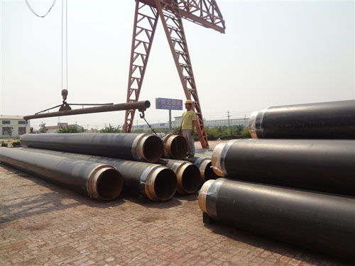 第三层:高密度聚乙烯保护层: 预制成一定壁厚的黑色或黄色聚乙烯塑料管材。其作用一是保护聚氨酯保温层免遭机械硬物破坏,二是防腐、防水。